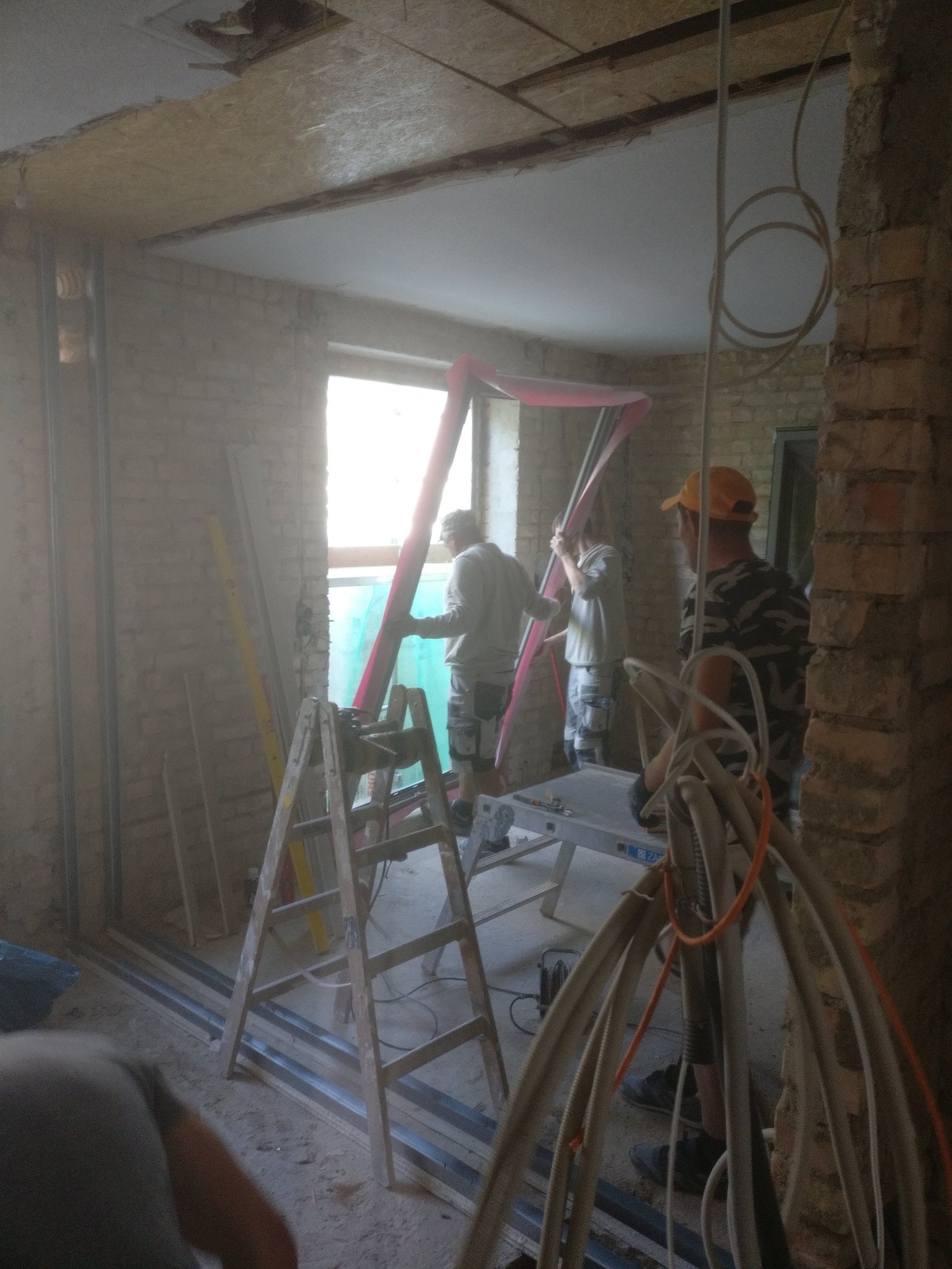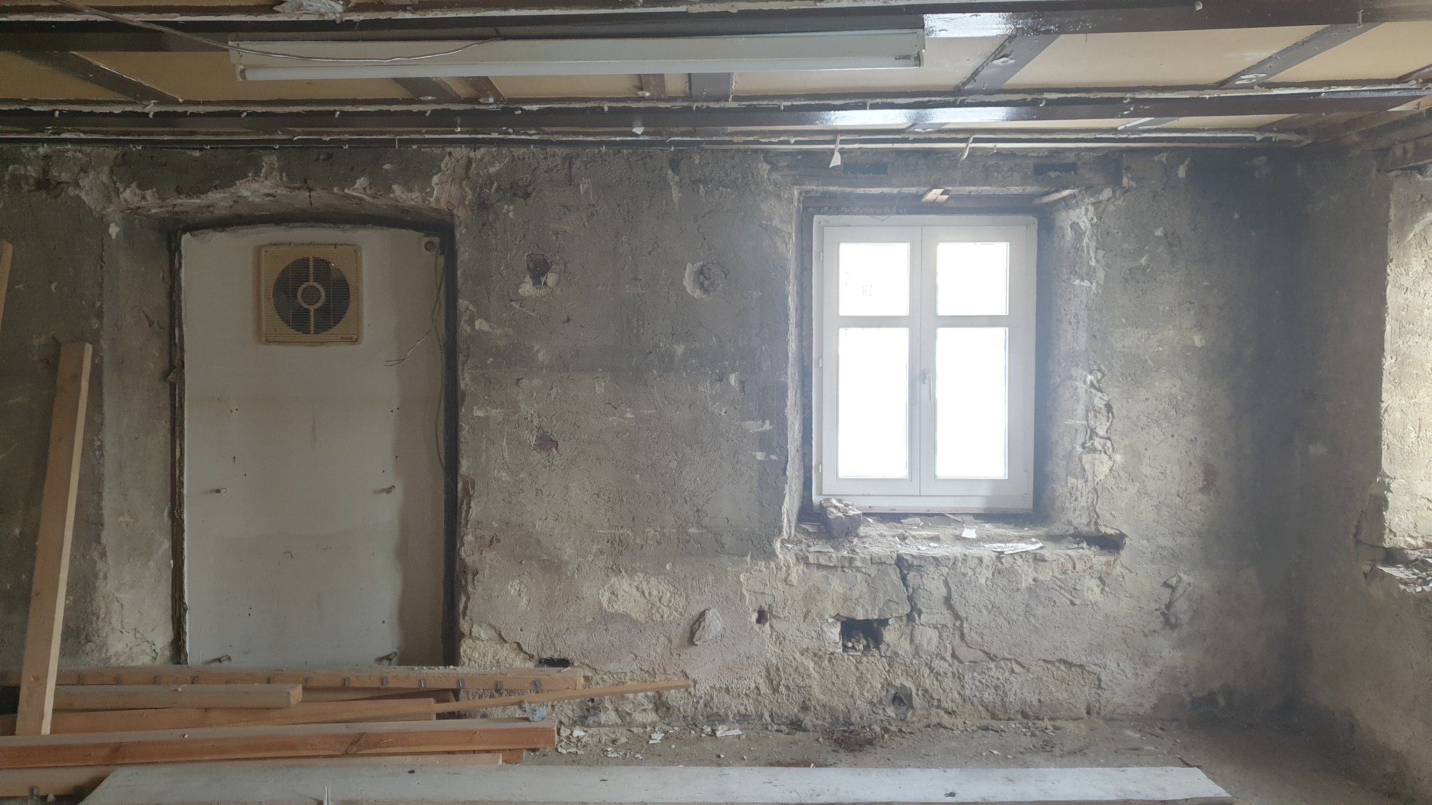 Schadensbegutachtung! Was ist Bestand, was ist da, was kann man retten, was ist verloren. Das bedeutet: alles raus was alt, vermodert, beschädigt und nicht mehr Stand der Technik ist. Ist das