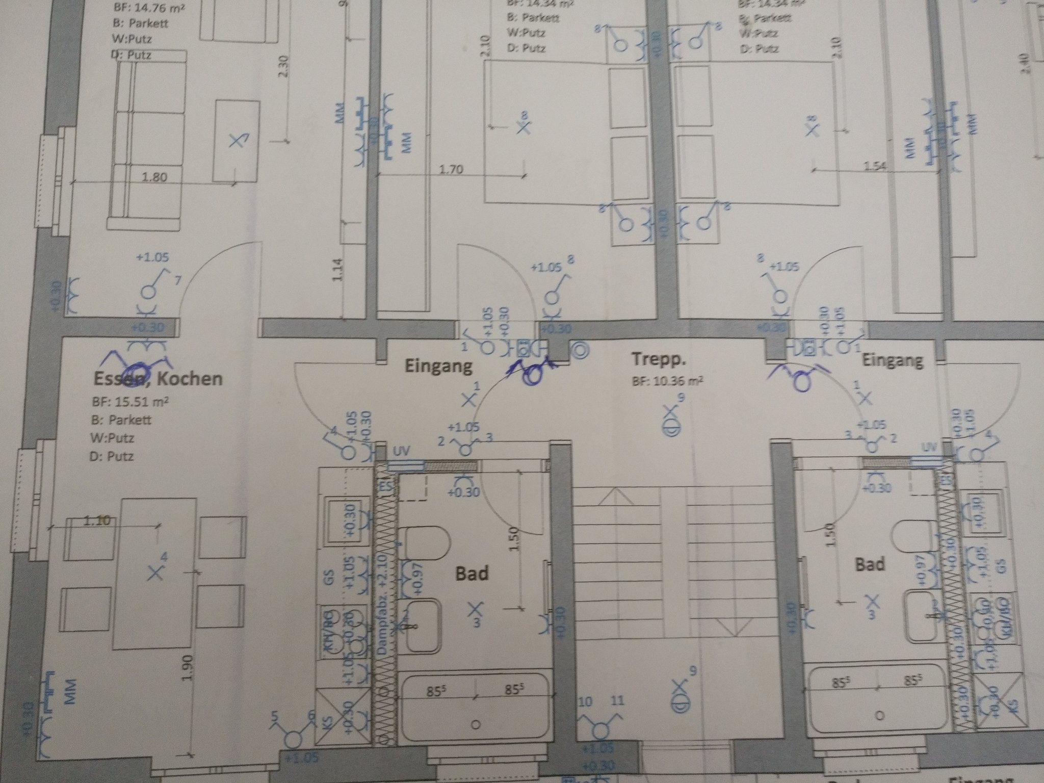 Auch hier die gleichen Herausforderungen. Vorkriegstechnik, alle Wohnungen bewohnt und das Dach soll ausgebaut werden, die Bäder, Küchen, Böden, Heizung, Wände, Fenster neu. Worauf wir besonders